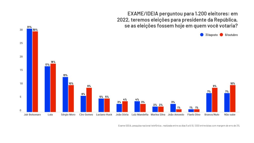 Nenhum/branco/nulo, 21% e Não sabe/não respondeu, 5%.