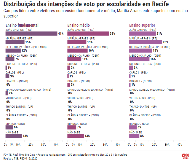 Ainda de acordo com o Big Data, Campos tem vantagem entre o eleitorado com ensino fundamental e médio. Já Marília entre os eleitores com ensino superior.