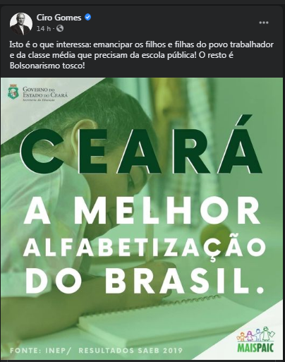 Já o ex-governador do estado e atual vice-presidente Nacional do PDT, Ciro Gomes, também exaltou o resultado e aproveitou a ocasião para alfinetar o presidente Jair Bolsonaro.