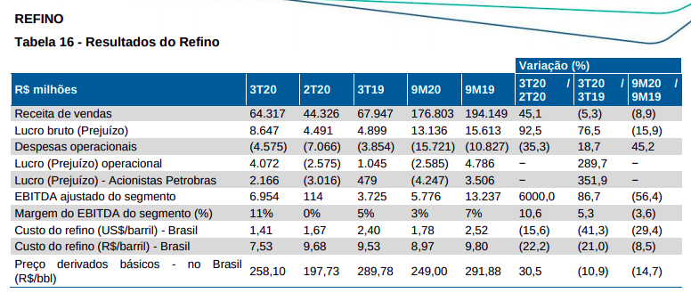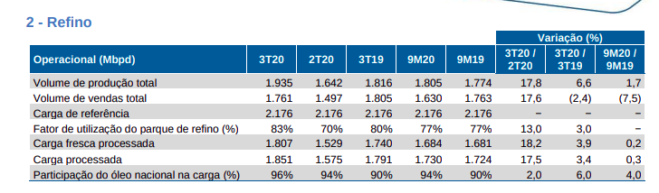 Outra informação importante é que o fator de utilização do parque do refino chegou a 83% no terceiro trimestre de 2020. Isso é um bom sinal, que mostra a ampliação do uso das nossas refinarias.