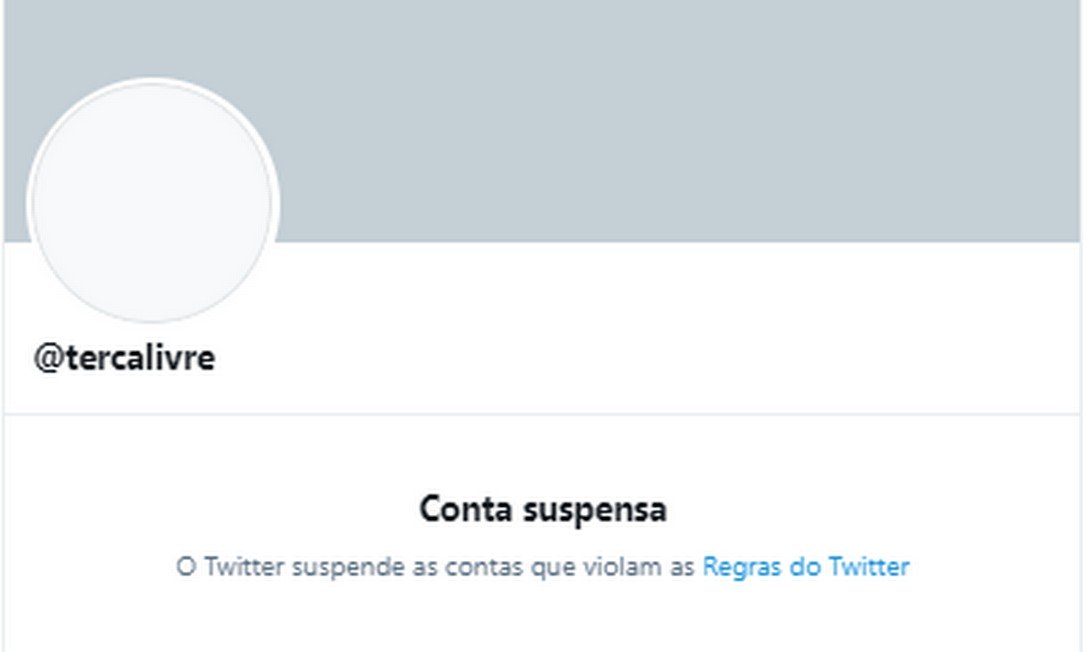 Às 12h15 desta quarta-feira, a conta estava fora do ar, com a mensagem: “O Twitter suspende as contas que violam as regras do Twitter”.