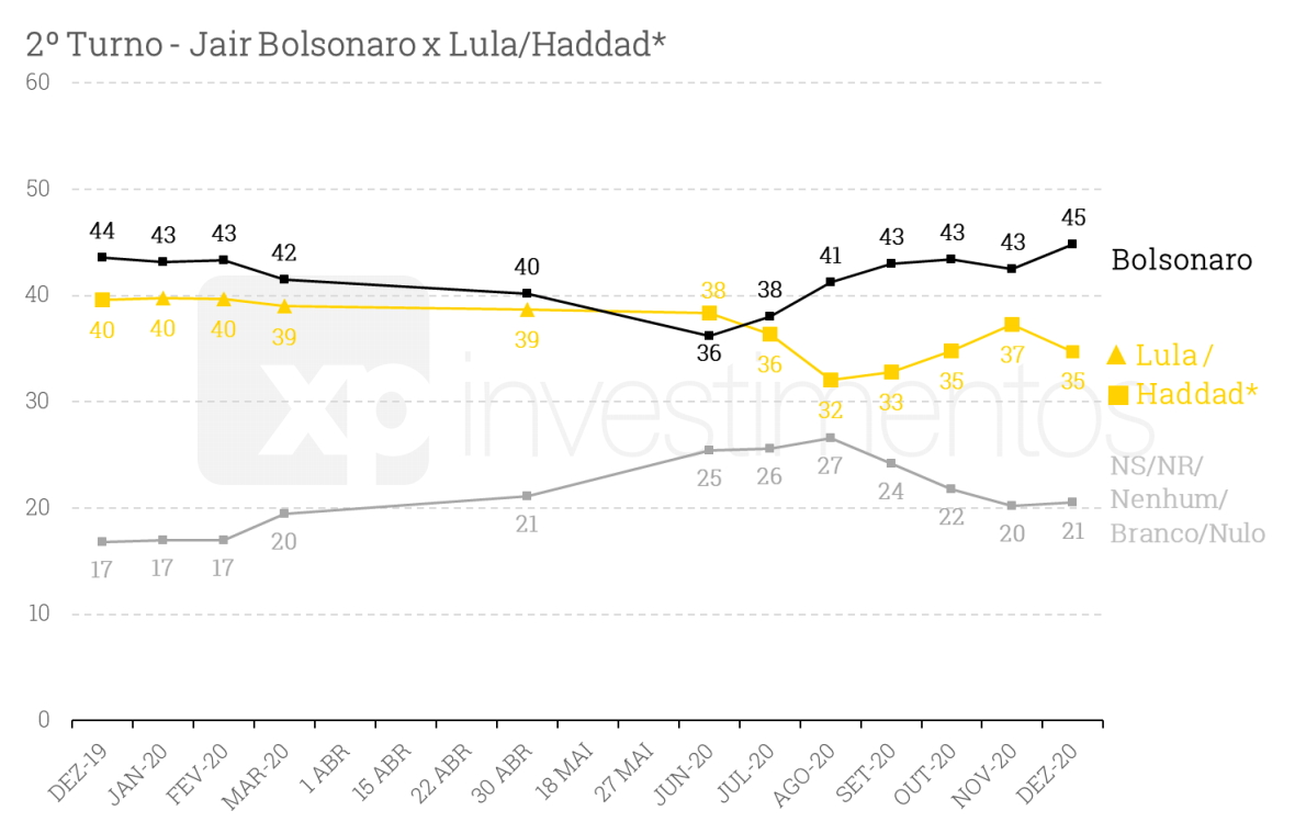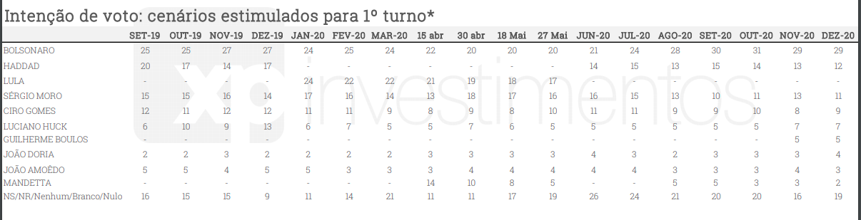 A pesquisa XP/Ipespe sobre as intenções de voto nas eleições presidenciais de 2022 confirma algumas tendências observadas em outras sondagens, como o esvaziamento da candidatura de Sergio Moro, o declínio de Fernando Haddad e a melhora na pontuação de Guilherme Boulos.