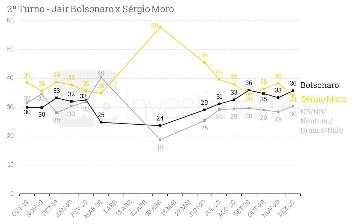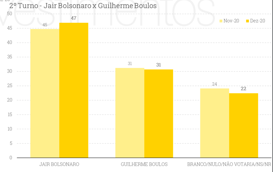 A pesquisa trouxe alguns cenários de segundo turno, de Bolsonaro X Lula/Haddad, Bolsonaro X Moro, Bolsonaro X Boulos e Bolsonaro X Ciro.