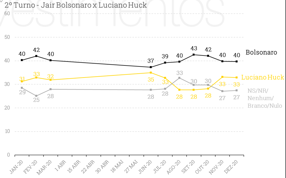 Luciano Huck pontuou 7% em dezembro, João Dória, 4%.