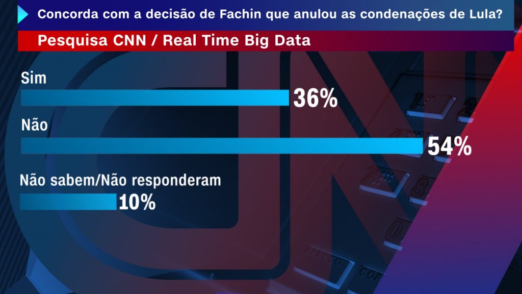 Além da pesquisa eleitoral, o Big Data também perguntou aos eleitores se concordam com a decisão de anular as condenações contra Lula.