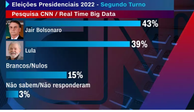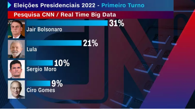 CNN/Big Data: Bolsonaro 31%, Lula 21%, Moro 10%, Ciro 9%