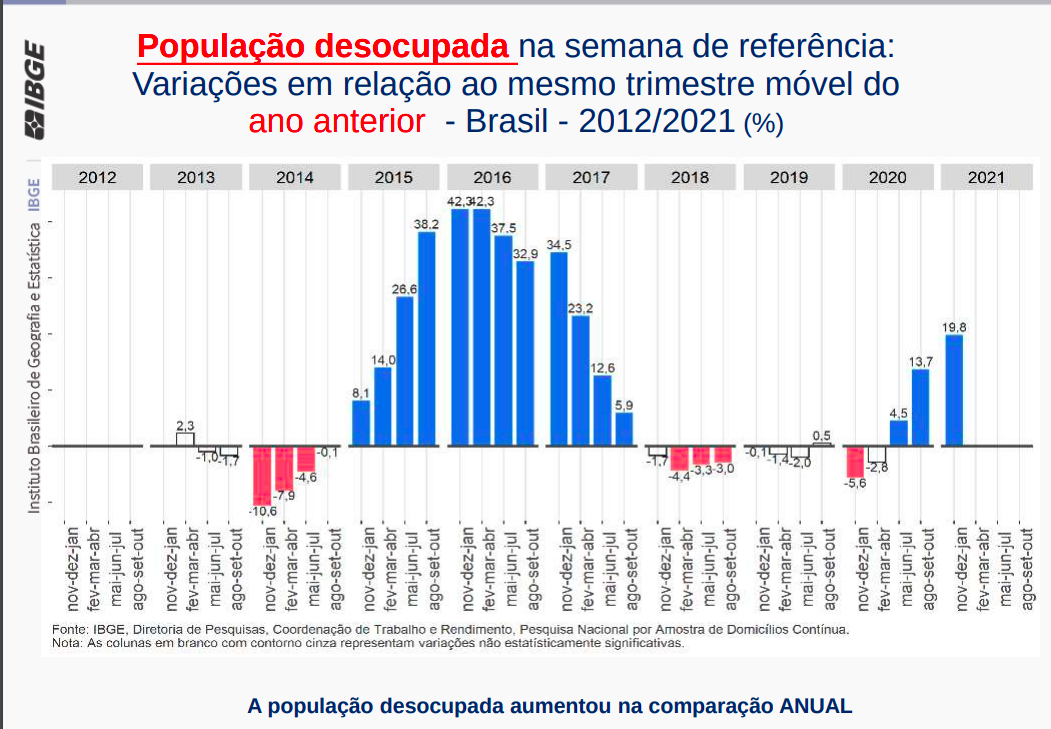 Os dados do desemprego até janeiro foram divulgados hoje pelo IBGE. A situação é dramática.