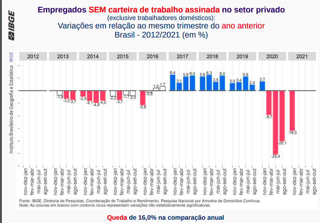 Em janeiro, tínhamos 15% menos empregos informais no país do que no mesmo período de 2020.
