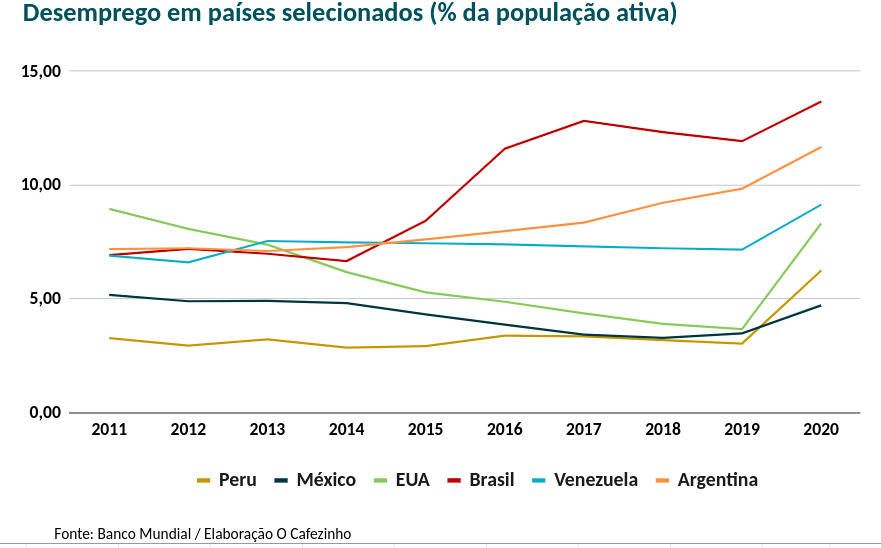 O desemprego no México, por exemplo, encerrou o ano de 2020 menor do que 5%.