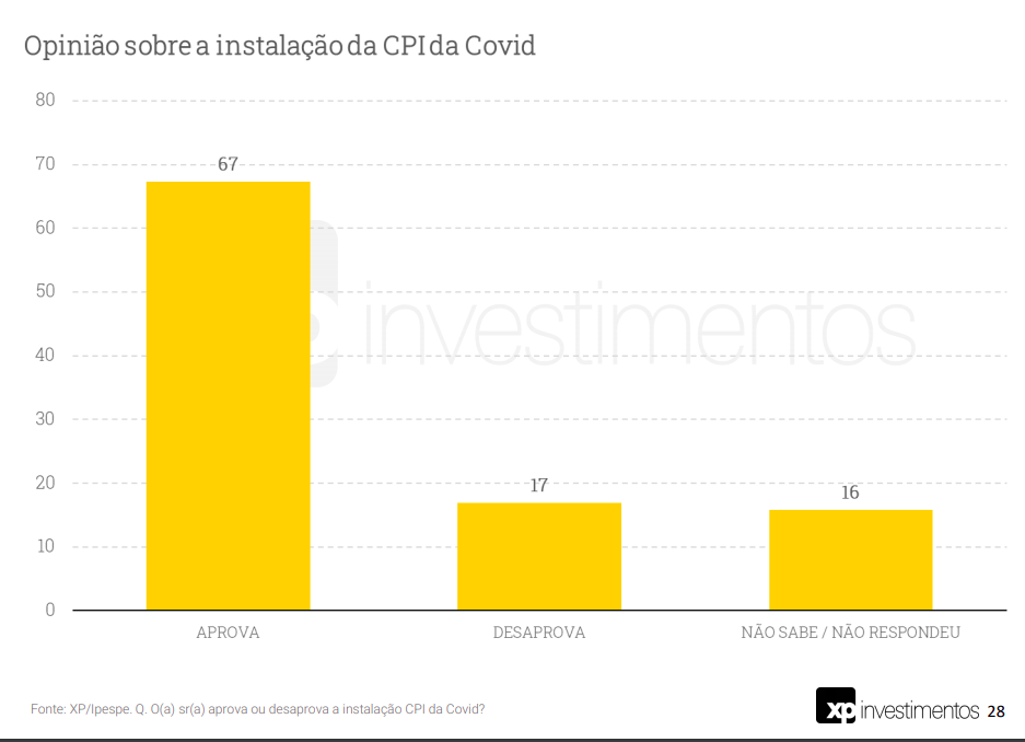 Igualmente positivo para a oposição é o apoio de quase 70% dos entrevistados à instalação da CPI da Covid.
