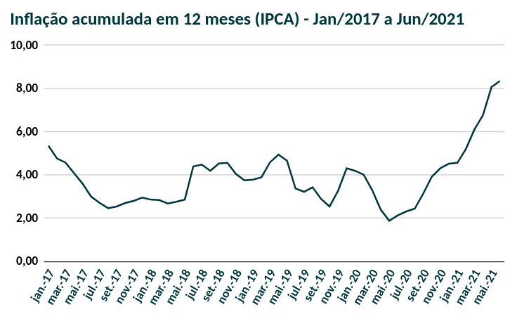 A inflação acumula alta de 8,35% nos últimos 12 meses. A variação acumulada em 12 meses é a maior desde setembro de 2016 (8,48%).