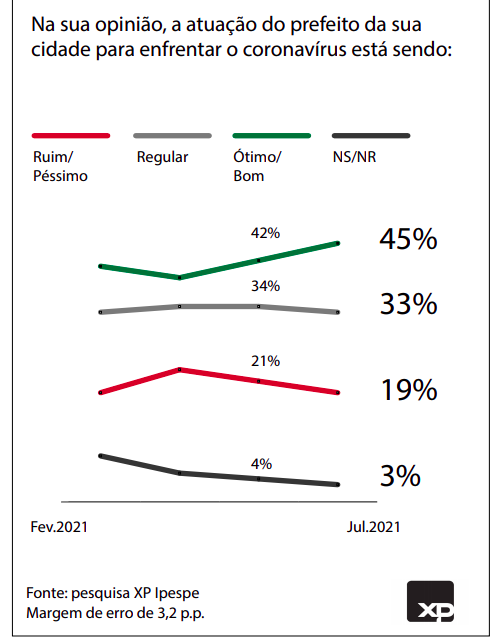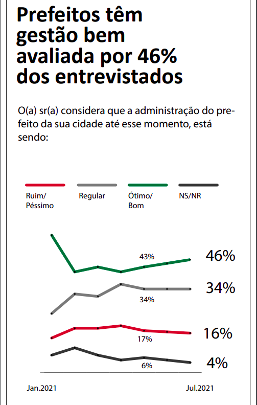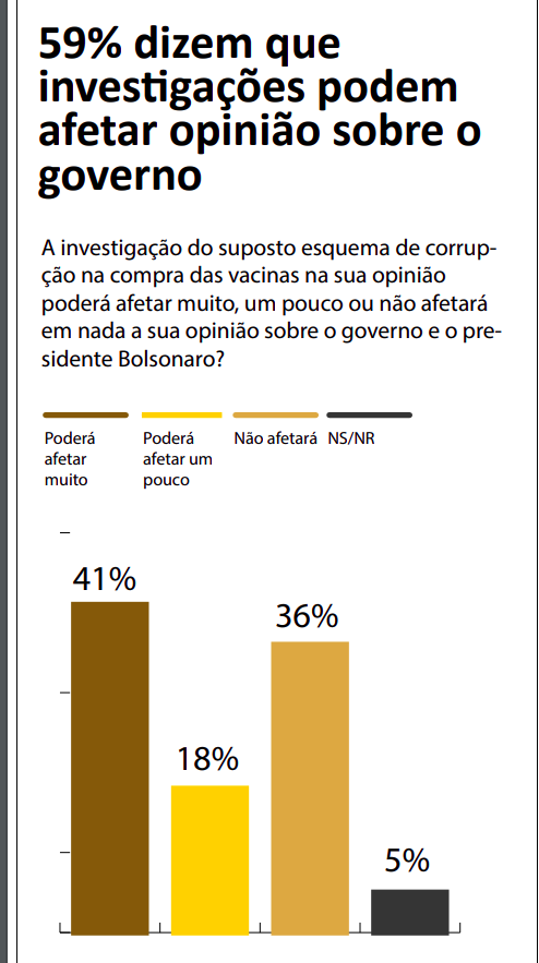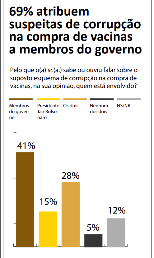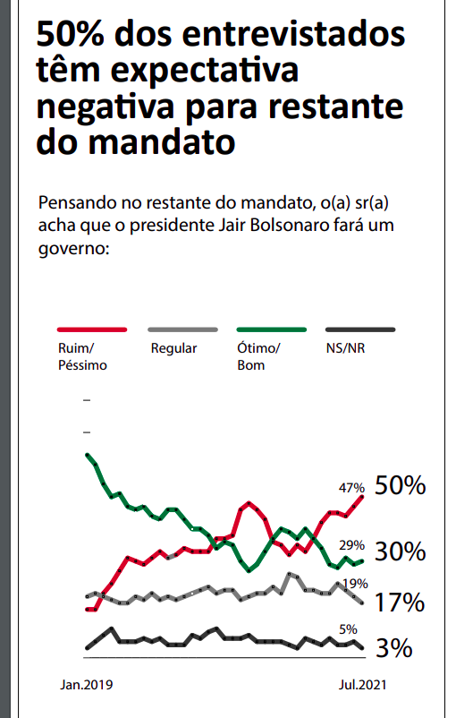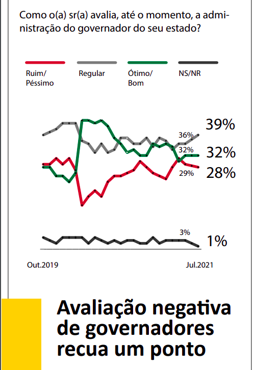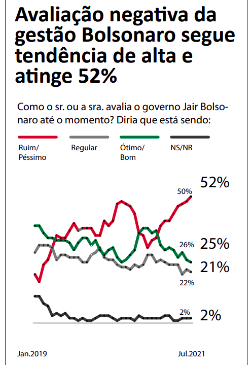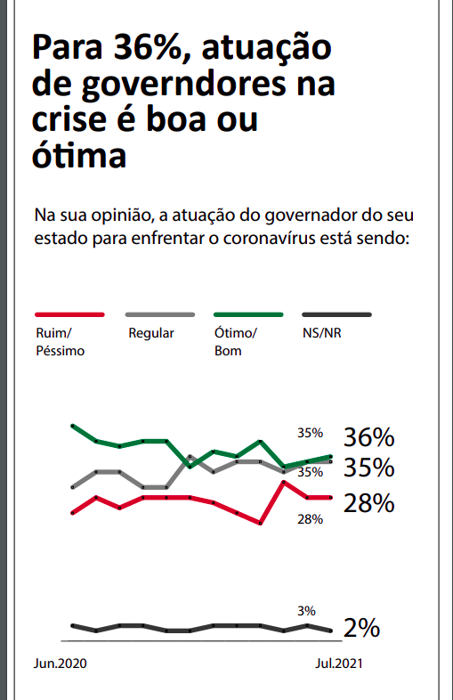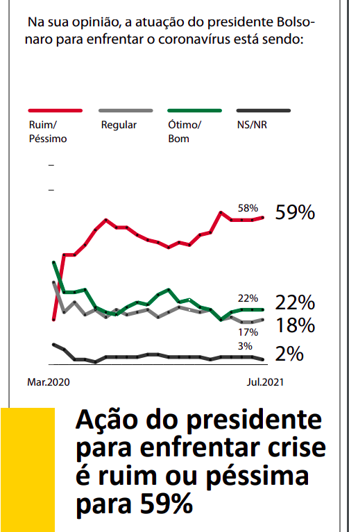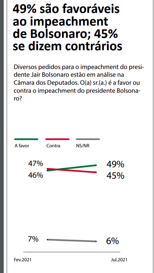 Confira os gráficos abaixo.  Eles tratam do impeachment, do desempenho na luta contra a Covid, além da avaliação do desempenho pessoal do presidente e das administrações municipais, estaduais e federal.