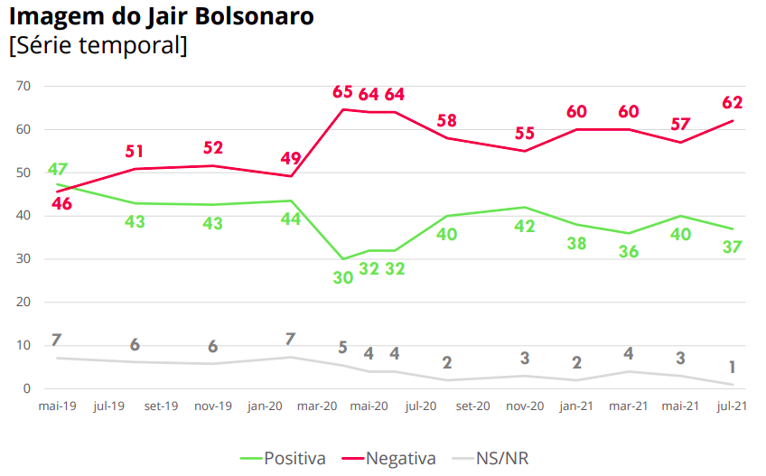 A imagem de Bolsonaro tem se deteriorado, mas o que impressiona mesmo é que ainda há 37% de entrevistados que tem uma impressão positiva do presidente.