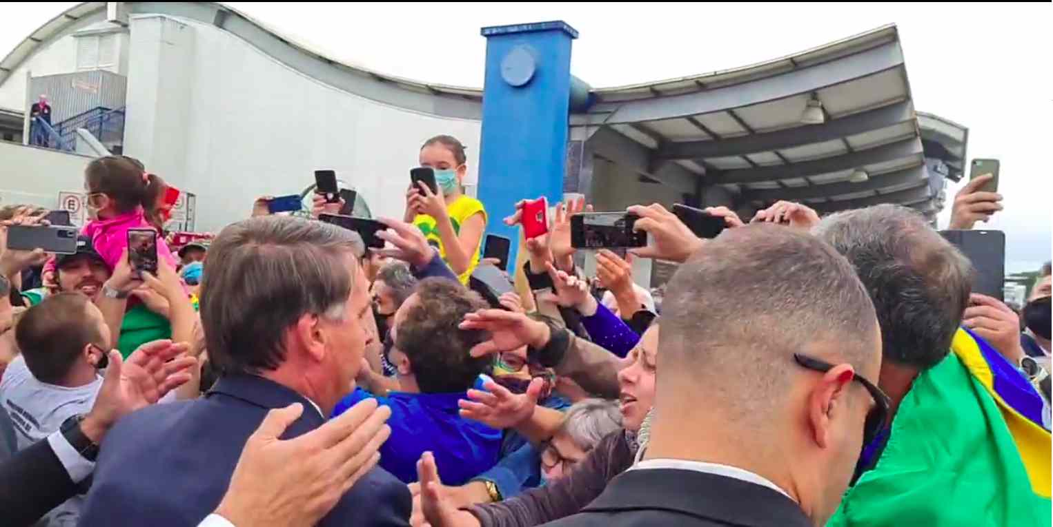 Bolsonaro também provocou aglomerações e apertou a mão de pessoas, sem uso de máscaras. Nenhum dos seguranças do presidente usa máscara.