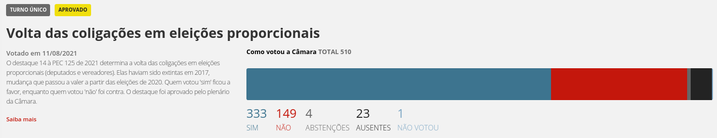 Um dos pontos polêmicos do projeto de reforma eleitoral aprovado ontem pela Câmara dos Deputados foi a volta das coligações em eleições proporcionais.  Esse ponto foi o Destaque 14 da PEC 125/2011 (ver aqui a orientação de partidos e votos dos deputados).