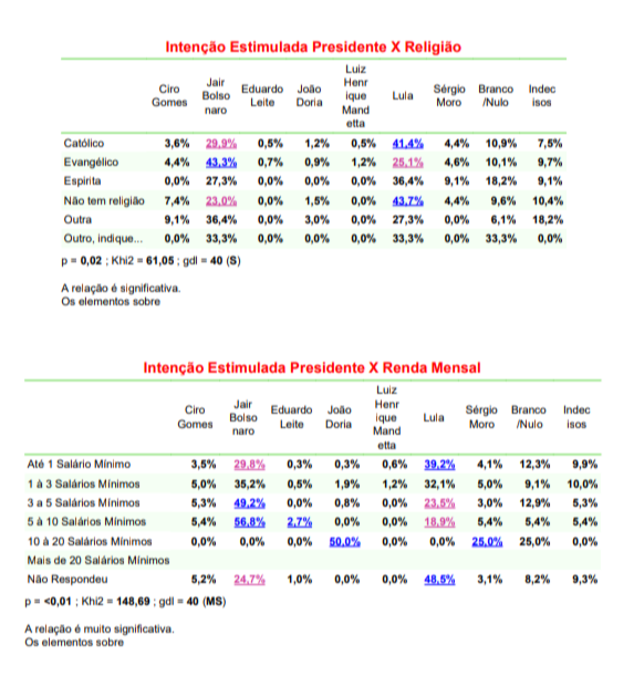 A pesquisa também levantou o apoio dos dois principais candidatos entre os eleitores que possuem ou não alguma religião.