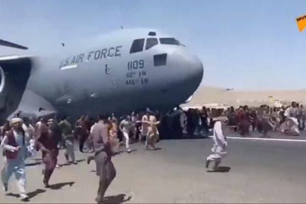 Com o grupo assumindo o controle do país, milhares de afegãos tentam fugir de forma desesperada. Enquanto o avião da Força Aérea dos EUA preparava-se para a decolagem, centenas de afegãos penduraram-se na aeronave num ato de completo desespero.