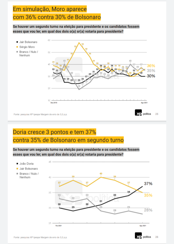 Cada vez que eu vejo essas pesquisas e os dois que ponteiam me dá uma tristeza profunda…Quando a direita civilizada vai perceber que, tirando Bolsonaro do 2º turno, tem grandes chances contra o Lula…2022 tá logo ali, vamos acordar!