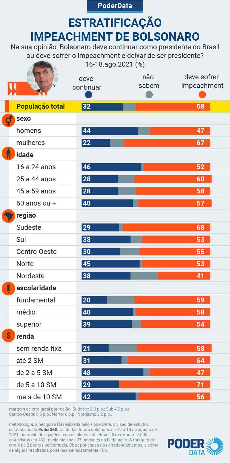 PoderData: apoio a impeachment de Bolsonaro chega a 58%
