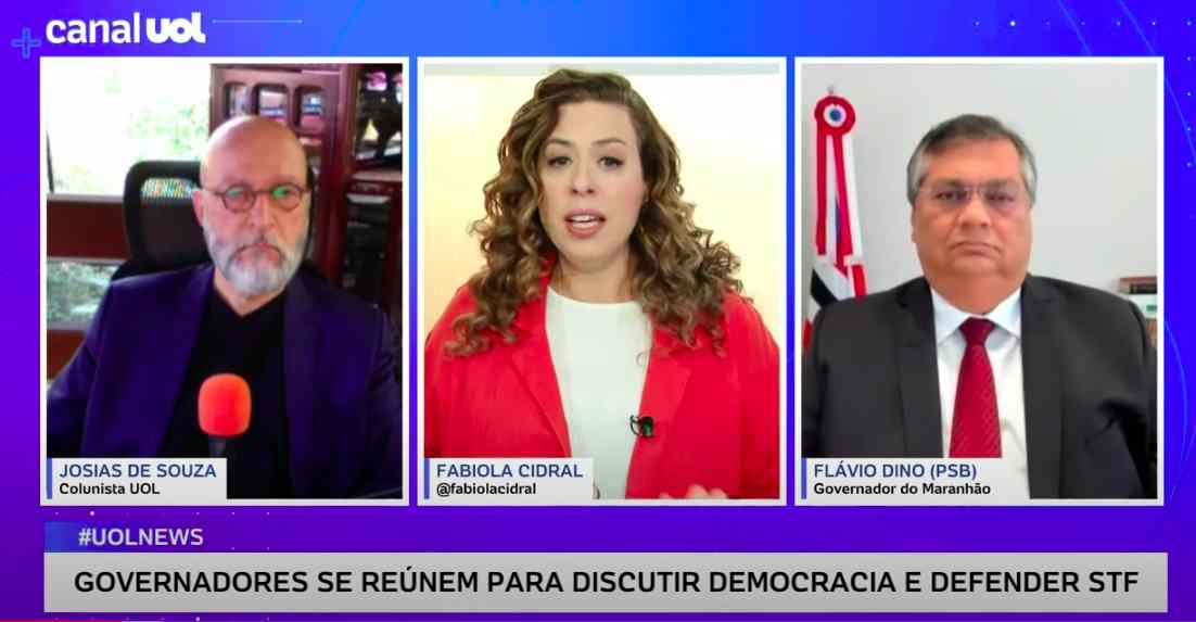 O governador do Maranhão, Flavio Dino (PSB), deu entrevista há pouco ao UOL para explicar porque governadores de vários estados estão organizando uma grande reunião para defender a democracia e o STF.