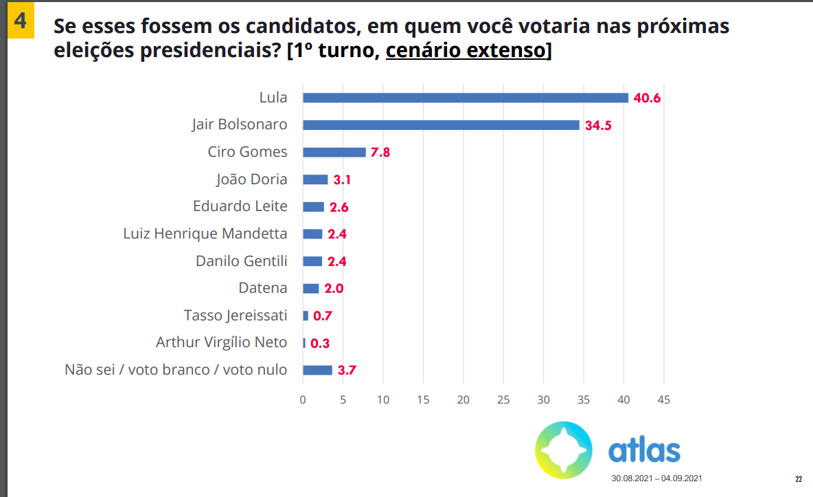 Mais uma pesquisa na praça. Dessa vez é do Atlas Político, e a íntegra pode ser baixada aqui.
