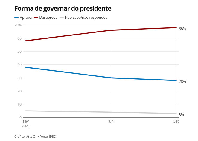 A pergunta feita pelo instituto foi “Na sua avaliação, o governo do presidente Jair Bolsonaro está sendo”, com as opções “Ótimo”, “bom”, “regular”, “ruim” ou “péssimo”.