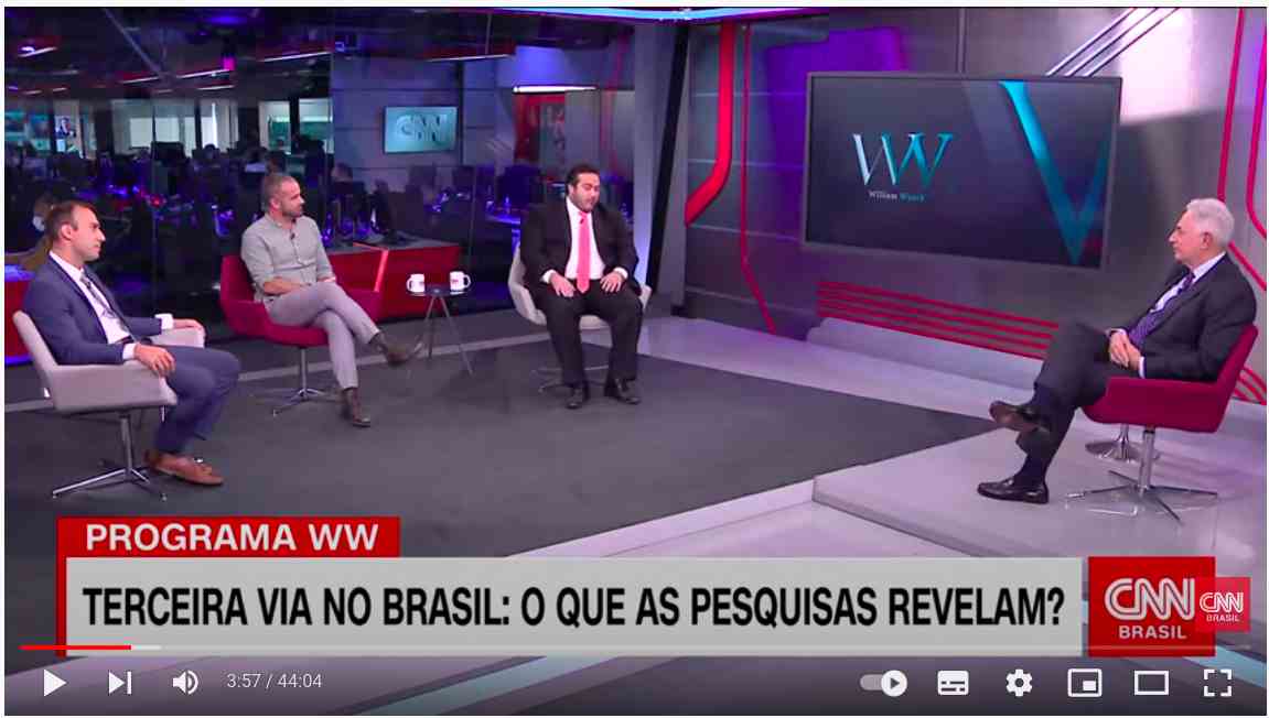 O outro vídeo é um debate sobre a terceira via na CNN Brasil, ancorado por William Waack, com a participação de três especialistas em pesquisa eleitoral: Andrei Roman, da Atlas Intel; Renato Meirelles, da Locomotiva; e Bruno Soller, do Travessia.