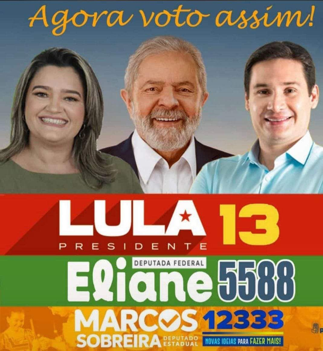 Circulam pelas redes, “satinhos” do candidato a deputado estadual Marcos Sobreira, do PDT, pedindo votos para para Lula junto com Eliane Braz, do PSD, que disputa como deputado federal.