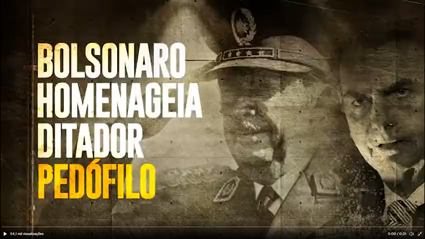 A campanha do ex-presidente Lula colocou na sua campanha de rádio e televisão, vídeos do presidente Jair Bolsonaro declarando ter admiração pelo ditador e pedófilo Alfredo Stroessner.