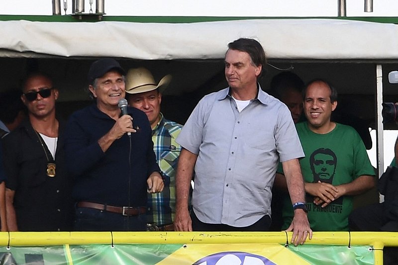 Nelson Piquet (ao volante do carro, levemente encoberto na foto): de campeão mundial de Fórmula 1 a chofer de Bolsonaro – Marcelo Camargo/Agência Brasil