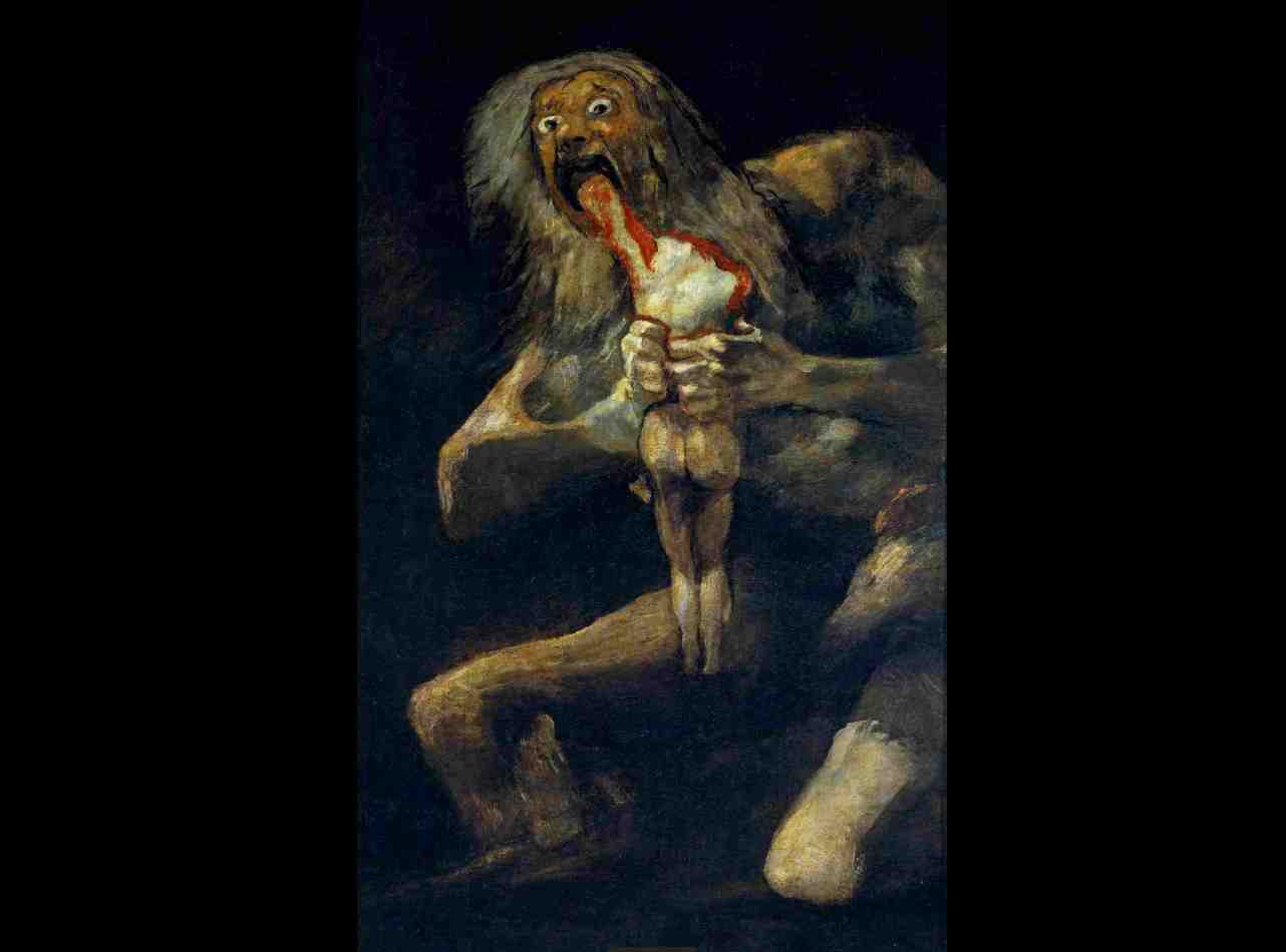 Lembrando a genial pintura de Goya, Saturno precisa devorar o próprio filho…