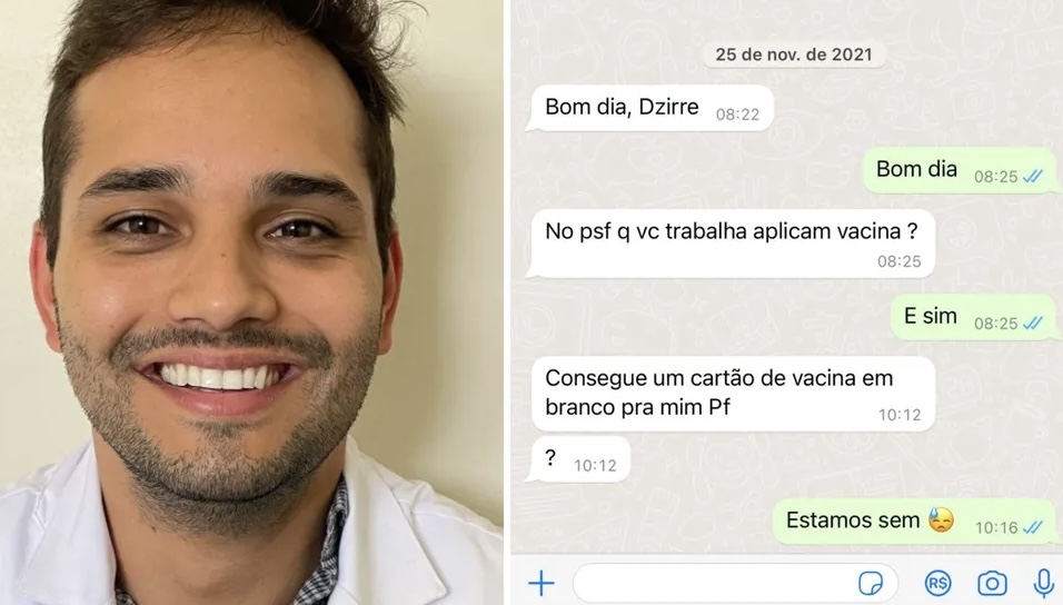 Um print divulgado recentemente mostra o médico Farley Vinícius de Alcântara, alvo da operação da PF que investiga um suposto esquema de fraudes em comprovantes vacinais, questionando uma enfermeira se haviam cartões de vacinação em branco para ele. O pedido foi feito no dia 25 de novembro de 2021.
