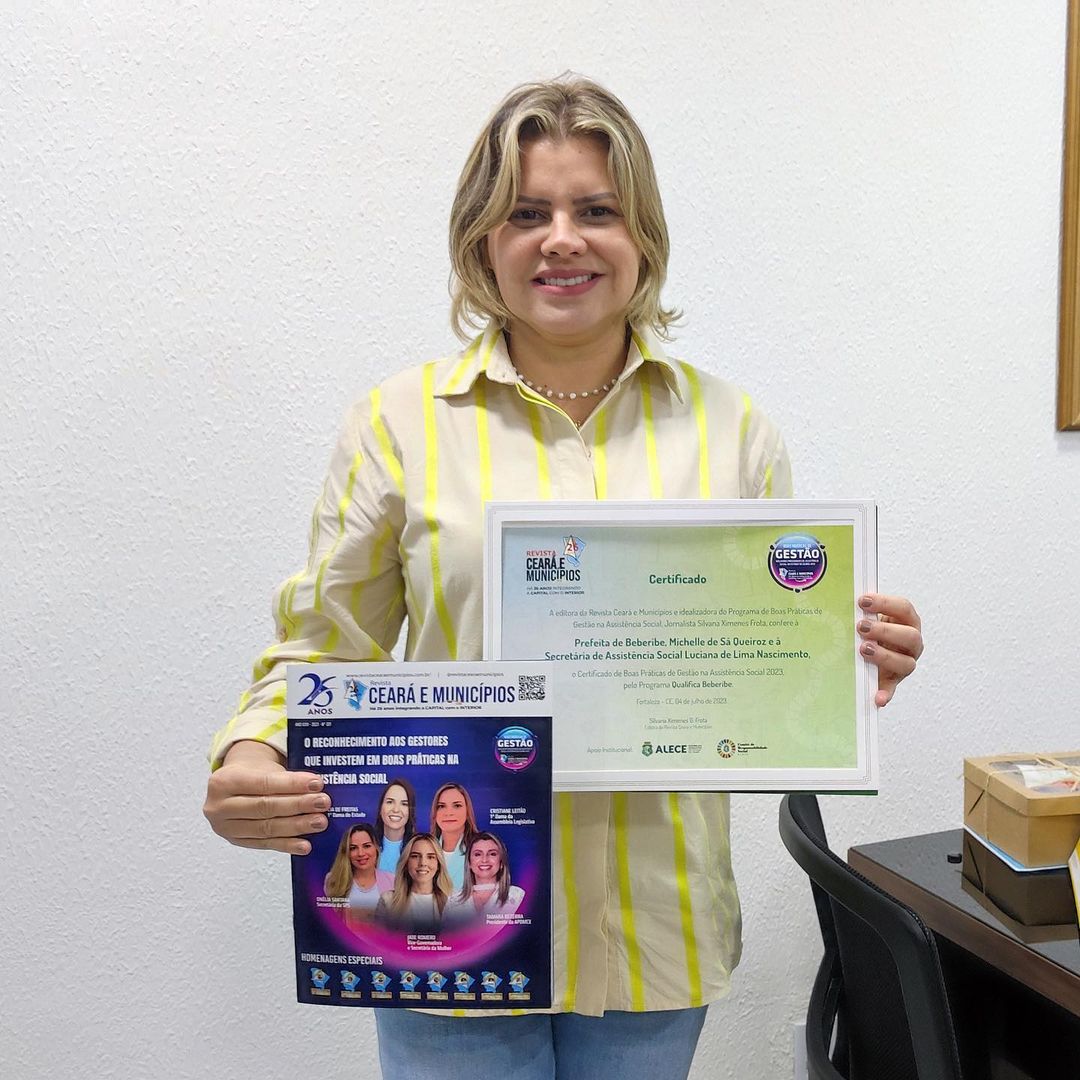 A gestão da prefeita Michele Queiroz foi certificada pelo segundo ano consecutivo pelas ações inovadoras que estão revolucionando e fazendo com que a cidade de Beberibe seja uma das mais desenvolvidas do estado do Ceará. A iniciativa é da Revista Ceará e Municípios.