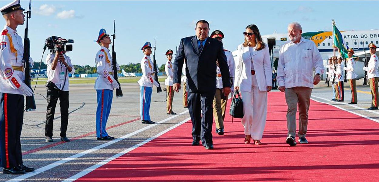 Esta é a primeira visita de Lula à Havana durante seu terceiro mandato. O petista é visto como um “irmão” no país – e o principal motivo é a grande influência do petista entre os países latino-americanos, que pode ser transformada em amplas discussões com líderes de países desenvolvidos. O presidente e a primeira-dama, Janja da Silva, foram recebidos com cerimônia.