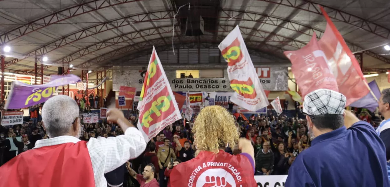 Nesta terça-feira, 3, os trabalhadores da Sabesp, Metrô e CPTM iniciaram uma greve, unindo-se em um ato simbólico contra a privatização dos serviços essenciais em São Paulo. A decisão foi anunciada durante um evento de organização para a greve que ocorreu na quadra do sindicato dos bancários e contou com o apoio de diversas categorias de trabalhadores, movimentos sociais e parlamentares.