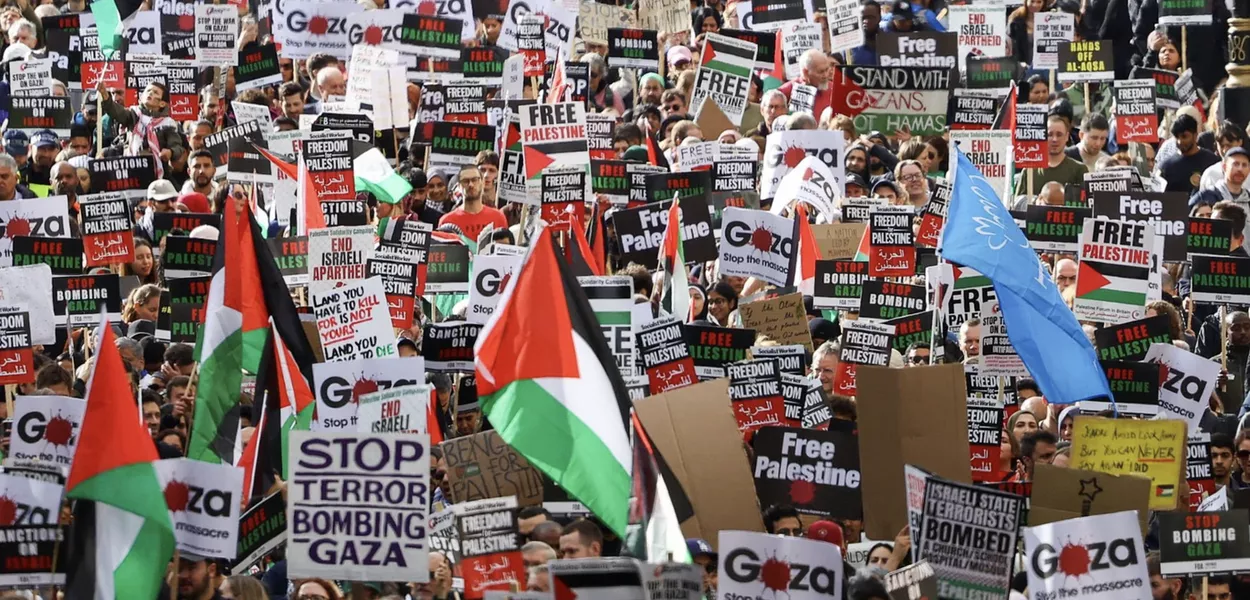 (Reuters) – Cerca de 100 mil pessoas se juntaram a uma manifestação pró-Palestina no centro de Londres neste sábado, marchando pela capital britânica para exigir um cessar-fogo imediato em Gaza após o ataque do Hamas a Israel há duas semanas.