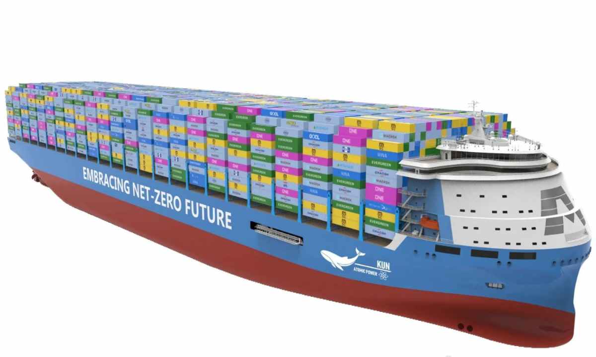 O Estaleiro Jiangnan, subordinado à China State Shipbuilding Corporation Limited, lançou oficialmente o projeto do navio porta-contêineres movido a energia nuclear da classe 24.000 TEU na Marintec China 2023, uma importante exposição marítima realizada em Xangai.