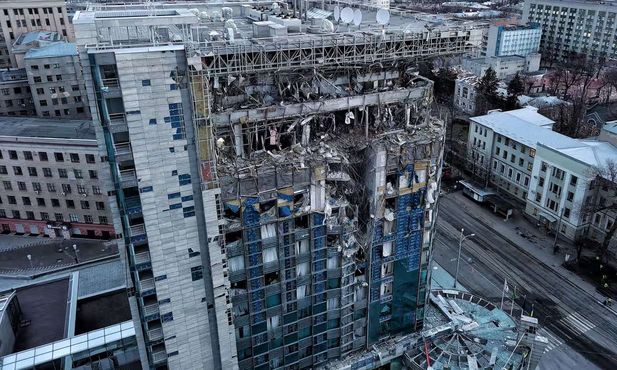 A polícia nacional da Ucrânia disse no domingo que pelo menos seis mísseis russos atingiram Kharkiv na noite de sábado, ferindo mais de duas dezenas de pessoas e atingindo 12 prédios de apartamentos, 13 casas residenciais, um hotel e um jardim de infância.