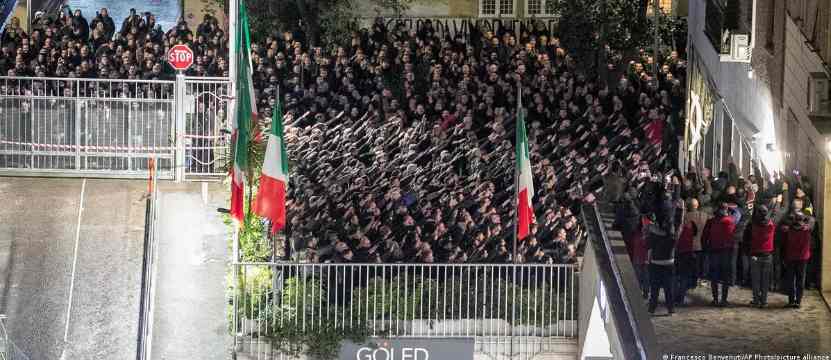 DW — O governo ultradireitista da primeira-ministra da Itália, Giorgia Meloni, está sob forte pressão da oposição para explicar como as autoridades permitiram que centenas de apoiadores do fascismo se manifestassem em praça pública com gestos proibidos por lei, sem que houvesse nenhuma intervenção da polícia.
