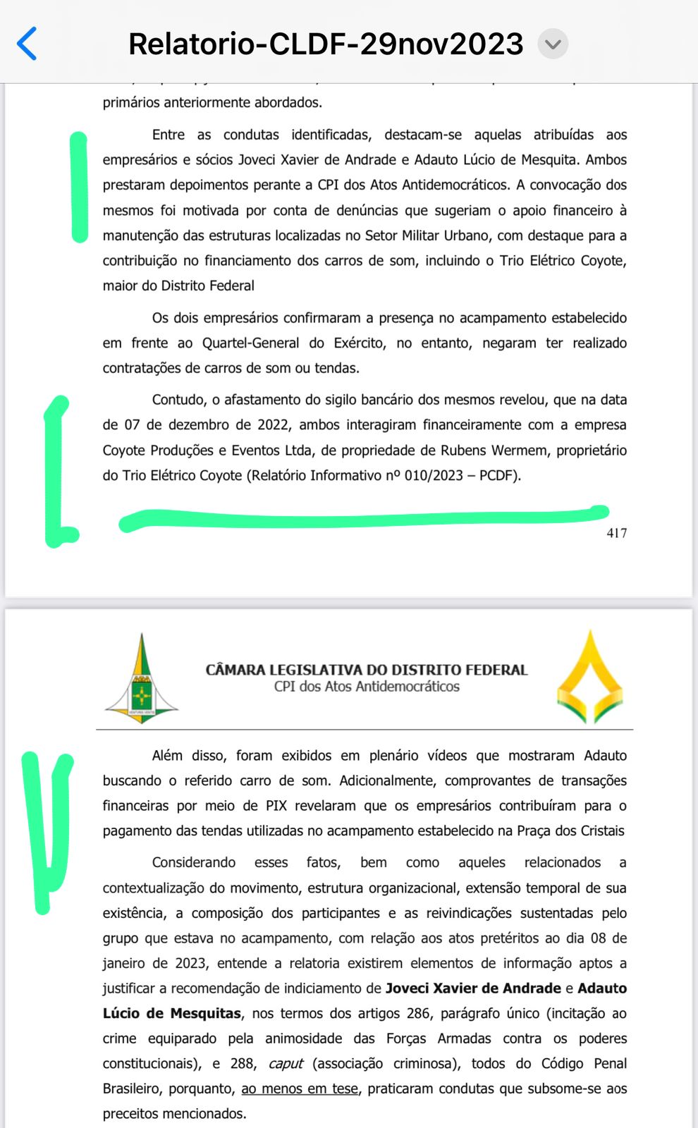 As informações são do relatório final da Durante a Comissão Parlamentar de Inquérito (CPI) da Câmara Legislativa do Distrito Federal (DF).