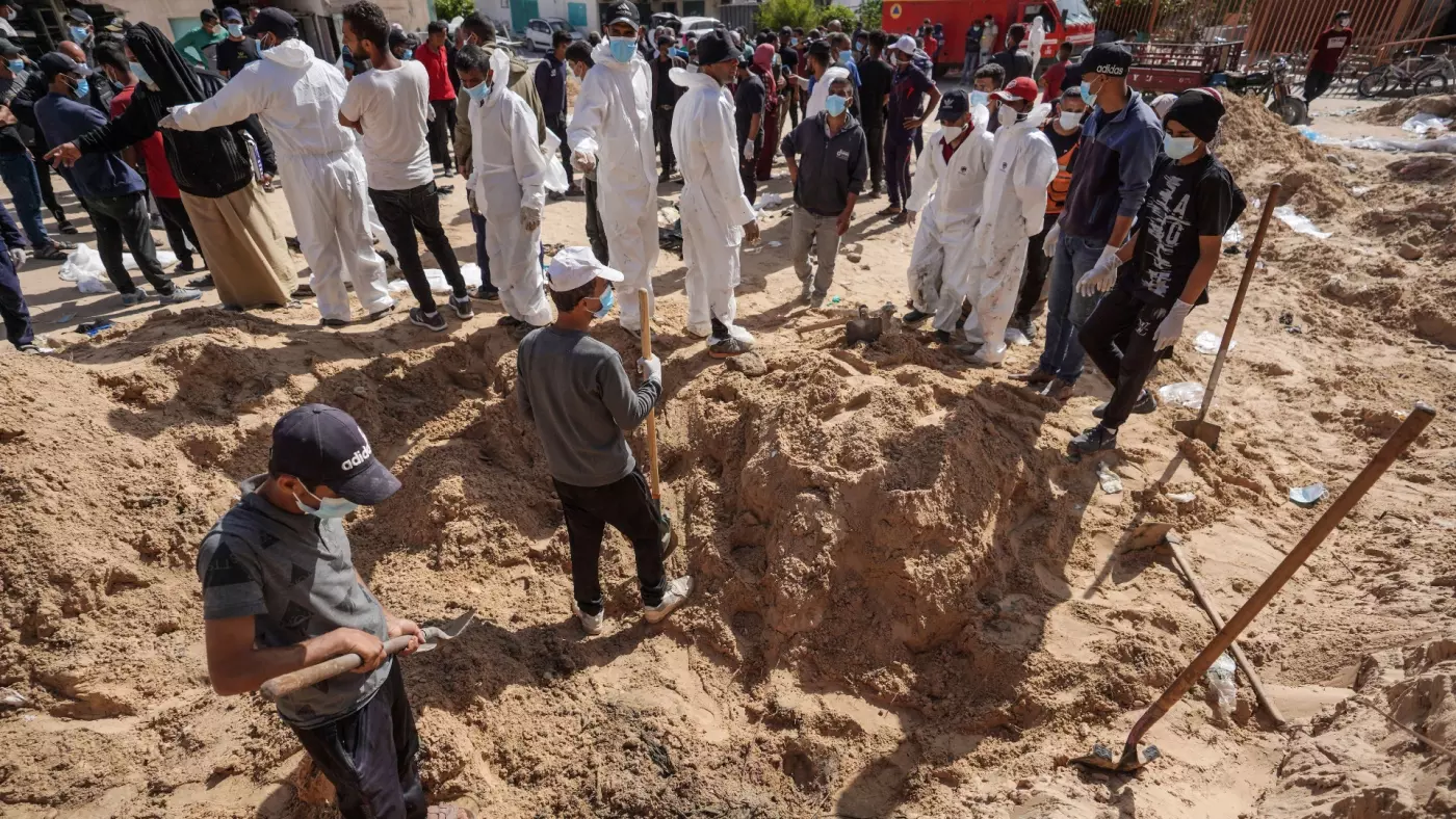 As valas comuns foram descobertas semanas depois que as tropas israelenses encerraram uma invasão de três meses em Khan Younis, durante a qual as forças terrestres atacaram repetidamente o hospital Nasser.