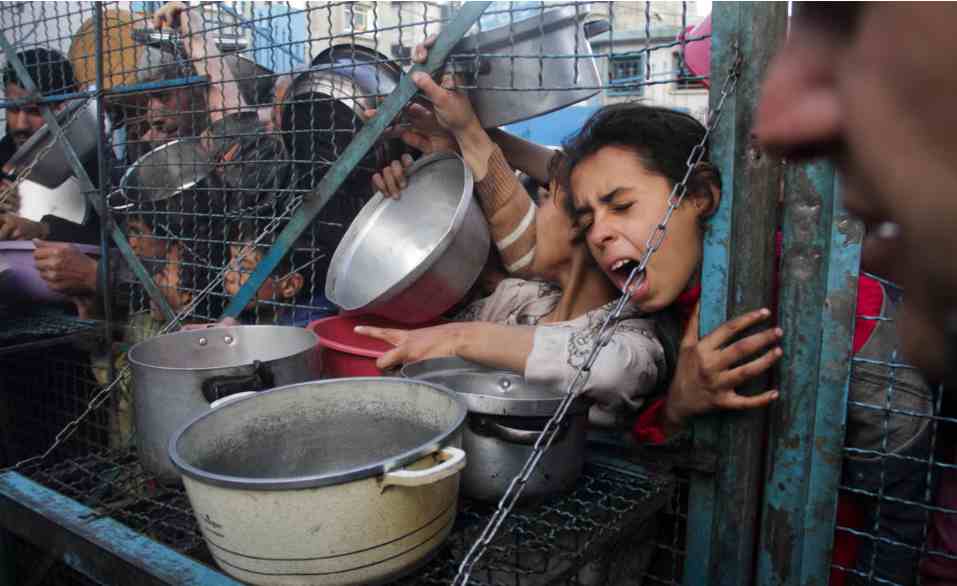 A fome leva primeiro os mais novos. Hoje em dia, em Gaza, muitas mães não conseguem produzir o leite necessário para alimentar os seus bebês porque não têm comida suficiente para comerem sozinhas. Pessoas desesperadas por qualquer alimento estão recorrendo ao consumo de ração animal e grama fervida. Muitas famílias vivem de uma refeição por dia.