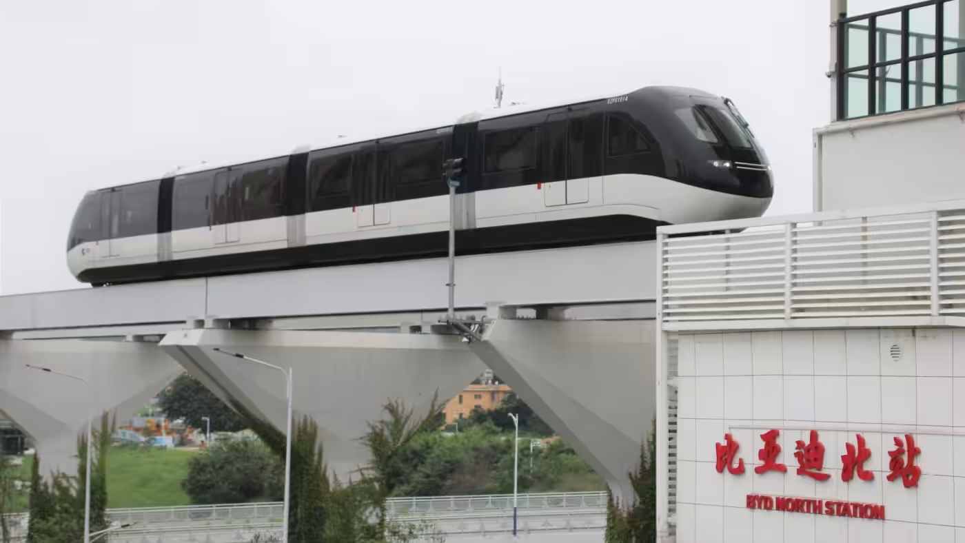 BYD da China utiliza tecnologia de veículos elétricos para fabricar monotrilhos de recarga rápida.