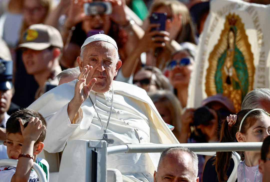 Papa Francisco cumprimenta as pessoas ao chegar para a audiência geral semanal na Praça de São Pedro, no Vaticano, em 5 de junho de 2024. REUTERS/Yara Nardi