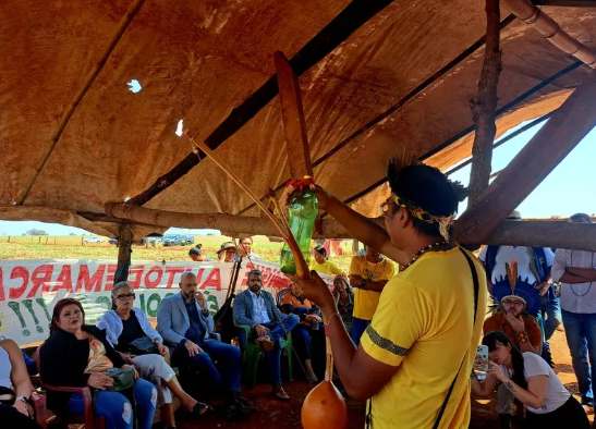 Em uma mão, o arco, a flecha e o mbaraká (instrumento sagrado). Na outra, uma garrafa com a água do rio, recém envenenada. Foi assim que Genivaldo*, jovem guerreiro Guarani Kaiowá da Terra Indígena (TI) Panambi Lagoa-Rica, falou para a comitiva de juristas, indigenistas, membros de entidades de defesa dos direitos humanos e do governo federal que visitou a comunidade em Douradina (MS) na quinta-feira (30).