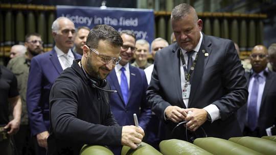 O governador democrata, Josh Shapiro, acompanhou Zelensky em um passeio pela Fábrica de Munição do Exército de Scranton no fim de semana, onde ambos assinaram projéteis de artilharia de 155 mm, que provavelmente serão enviados às tropas ucranianas.