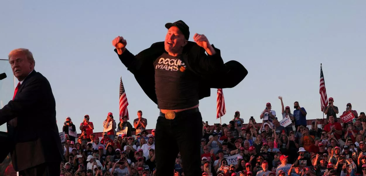 No evento realizado no sábado, em Butler, Pensilvânia, Musk participou ativamente, subindo ao palco e engajando-se entusiasticamente com o público.