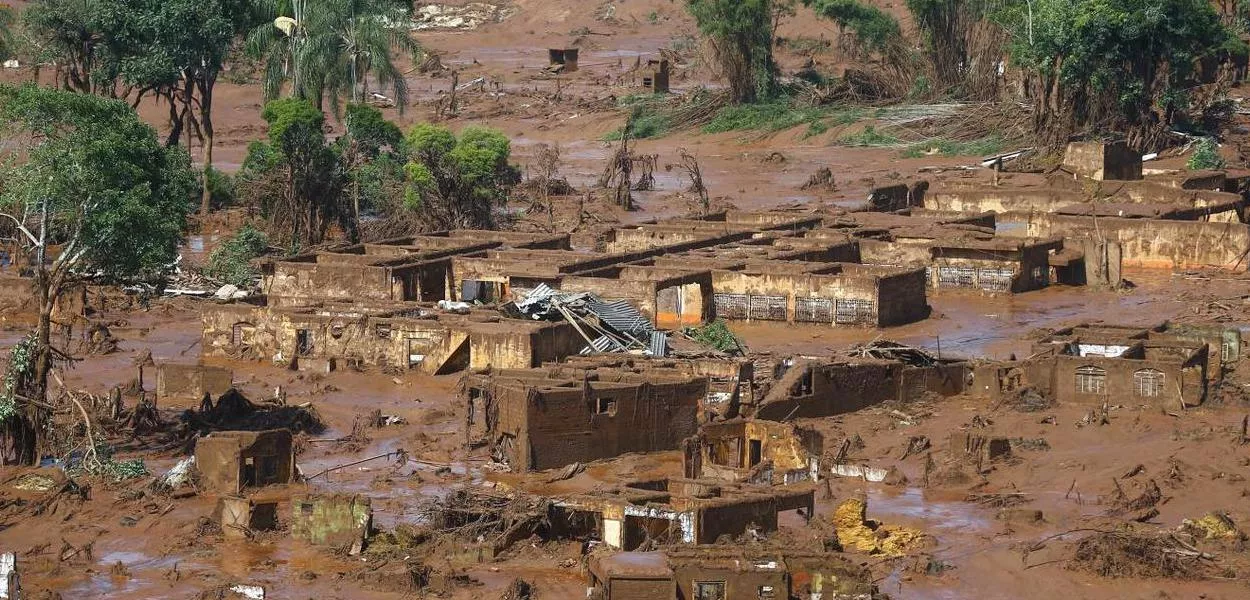 A barragem de Fundão, que se rompeu em 5 de novembro de 2015, liberou uma onda de lama tóxica que percorreu centenas de quilômetros, afetando o Rio Doce e diversas comunidades ao longo de seu trajeto. Além das 19 mortes, o desastre provocou a destruição de vilarejos, a contaminação de cursos d’água e severos danos à biodiversidade local.