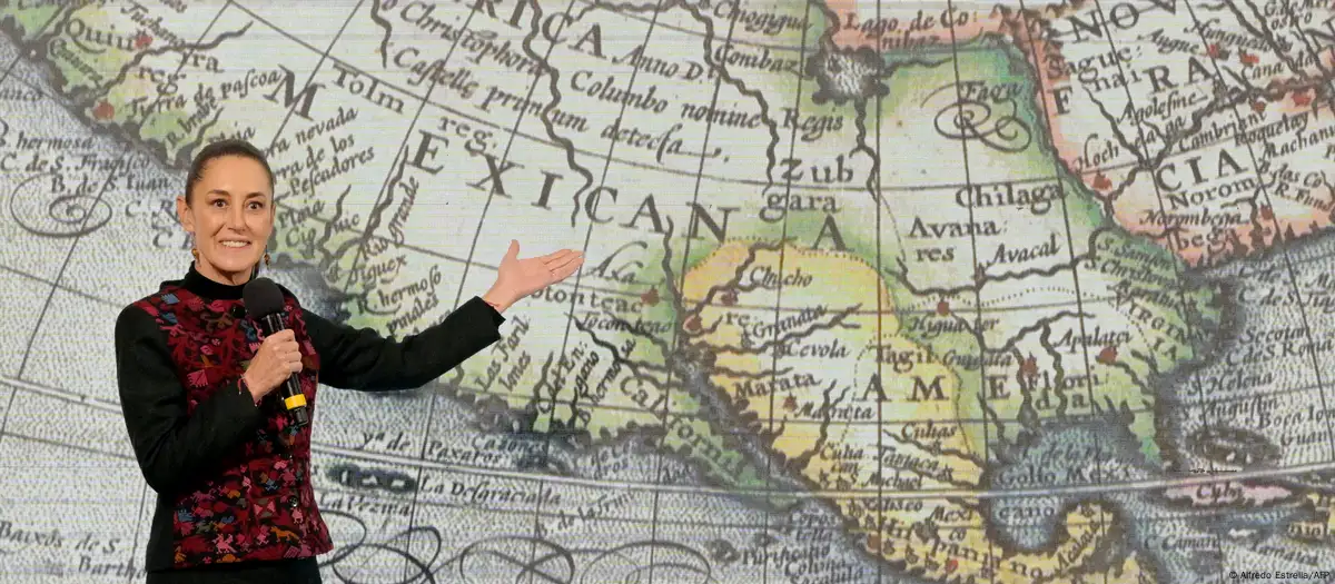 Claudia Sheinbaum reage a comentários de Donald Trump nos quais ele disse que o Golfo do México deveria ser rebatizado de “Golfo da América”, e rechaça ameaças de novas tarifas contra seu país.