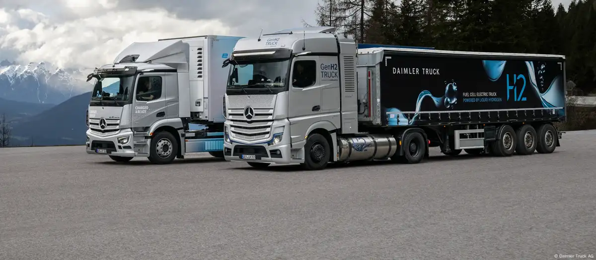 Por isso a maioria das montadoras tem optado pelas baterias, em vez de células de combustível. Entretanto a Daimler e a Volvo, entre outras, partem do princípio de que o processo nunca estará avançado o suficiente para alimentar cargas super pesadas. Por isso estão desenvolvendo paralelamente caminhões a hidrogênio.